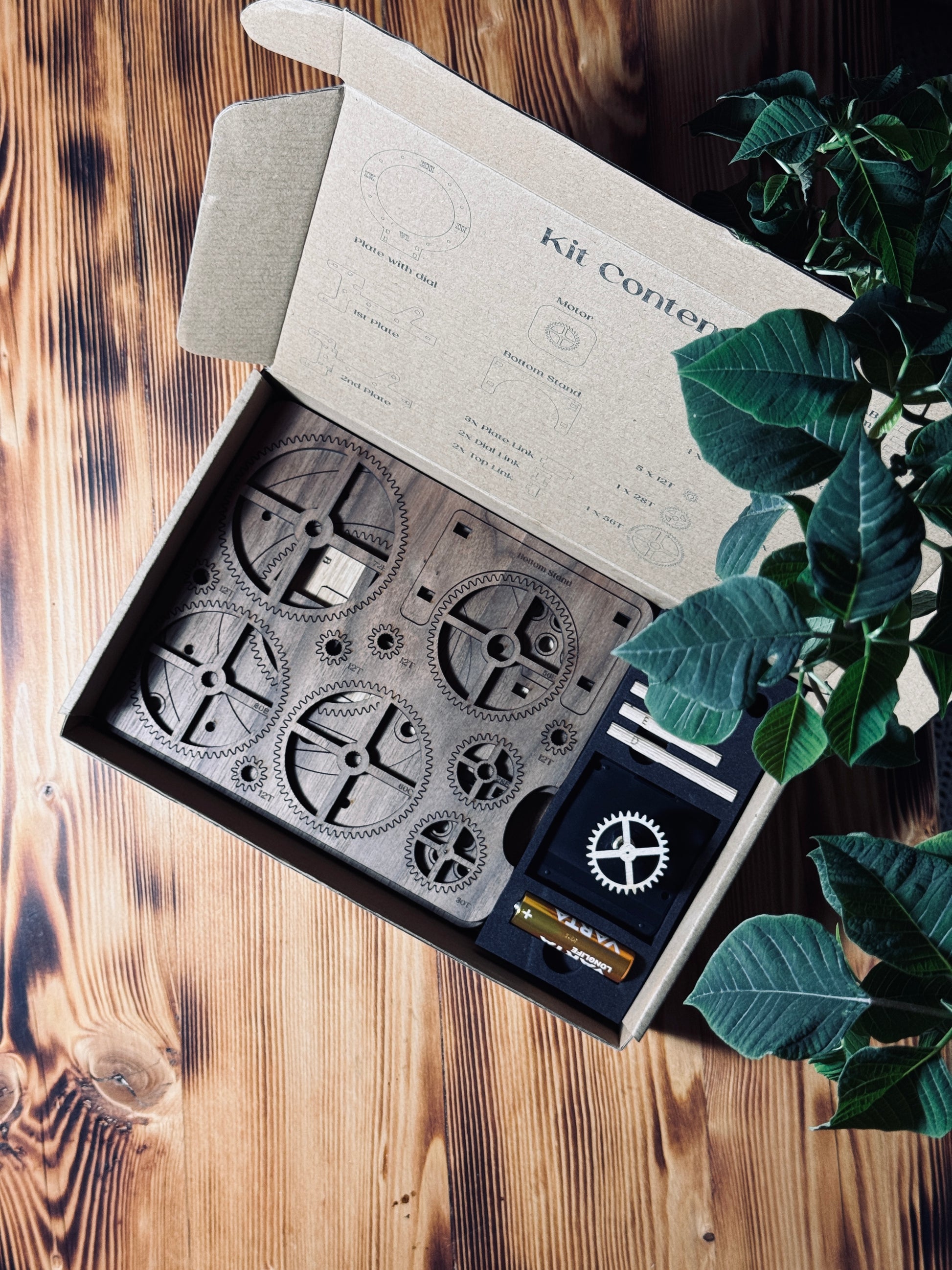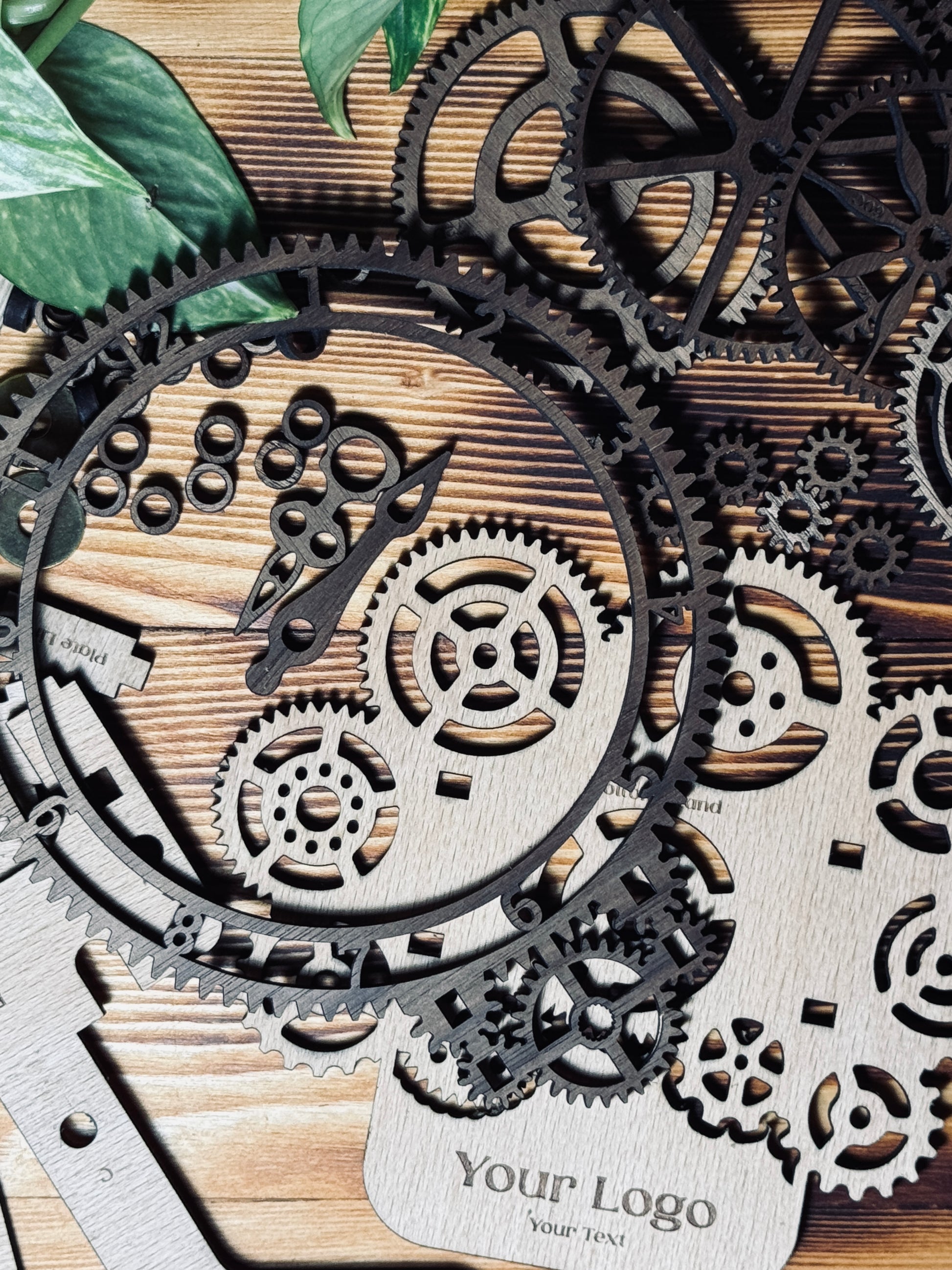 Oživi čas z DIY steampunk kompletom. Ura je zasnovana s plastenimi zobniki in natančno lasersko izrezanimi detajli, ter združuje industrijski šarm s funkcionalno umetnostjo.
