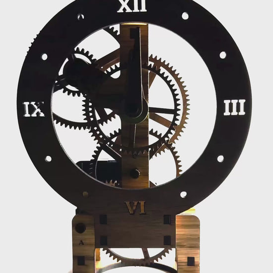 Ta elegantna, sodobna zobata ura razkriva vsak zobnik v gibanju. Zasnovana za vse, ki cenijo inženiring in estetiko – ta sestavljiva lesena ura je natančno lasersko izrezana, enostavna za klik-sestavo in popolnoma funkcionalna.