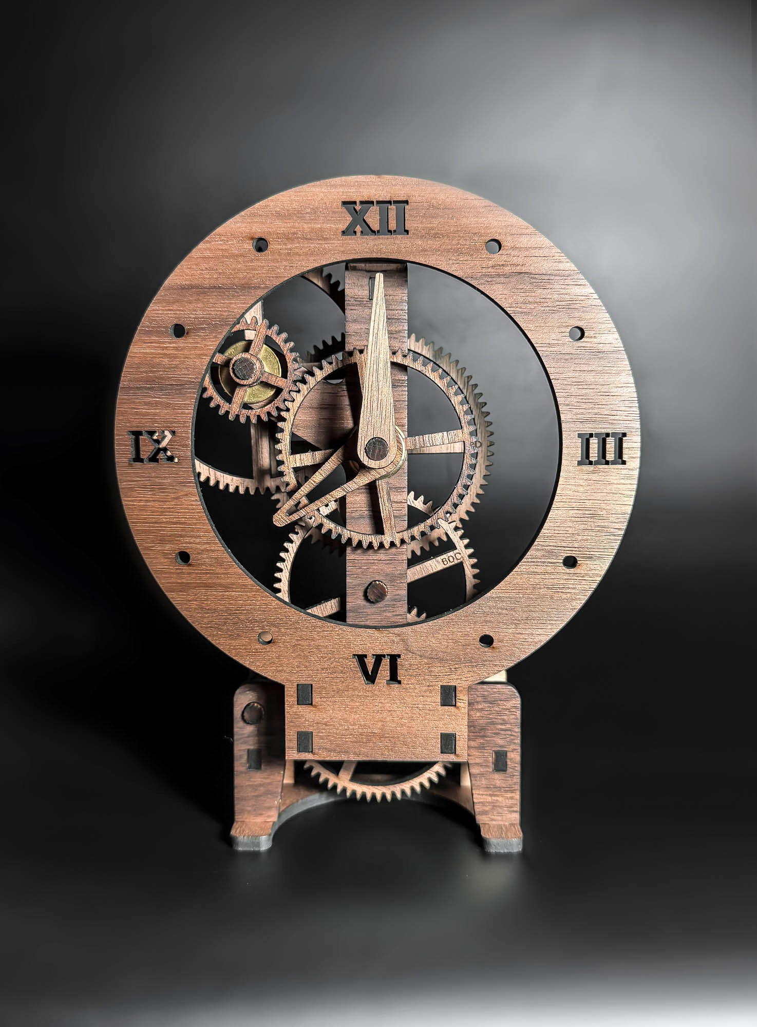 Zgradi popolnoma funkcionalno uro, ki ponosno razkriva svojo notranjost. Ta lasersko izrezana lesena zobata ura združuje inženiring, oblikovanje in praktično sestavljanje v kinetično umetnino, ki se čudovito poda na vsako mizo ali polico.