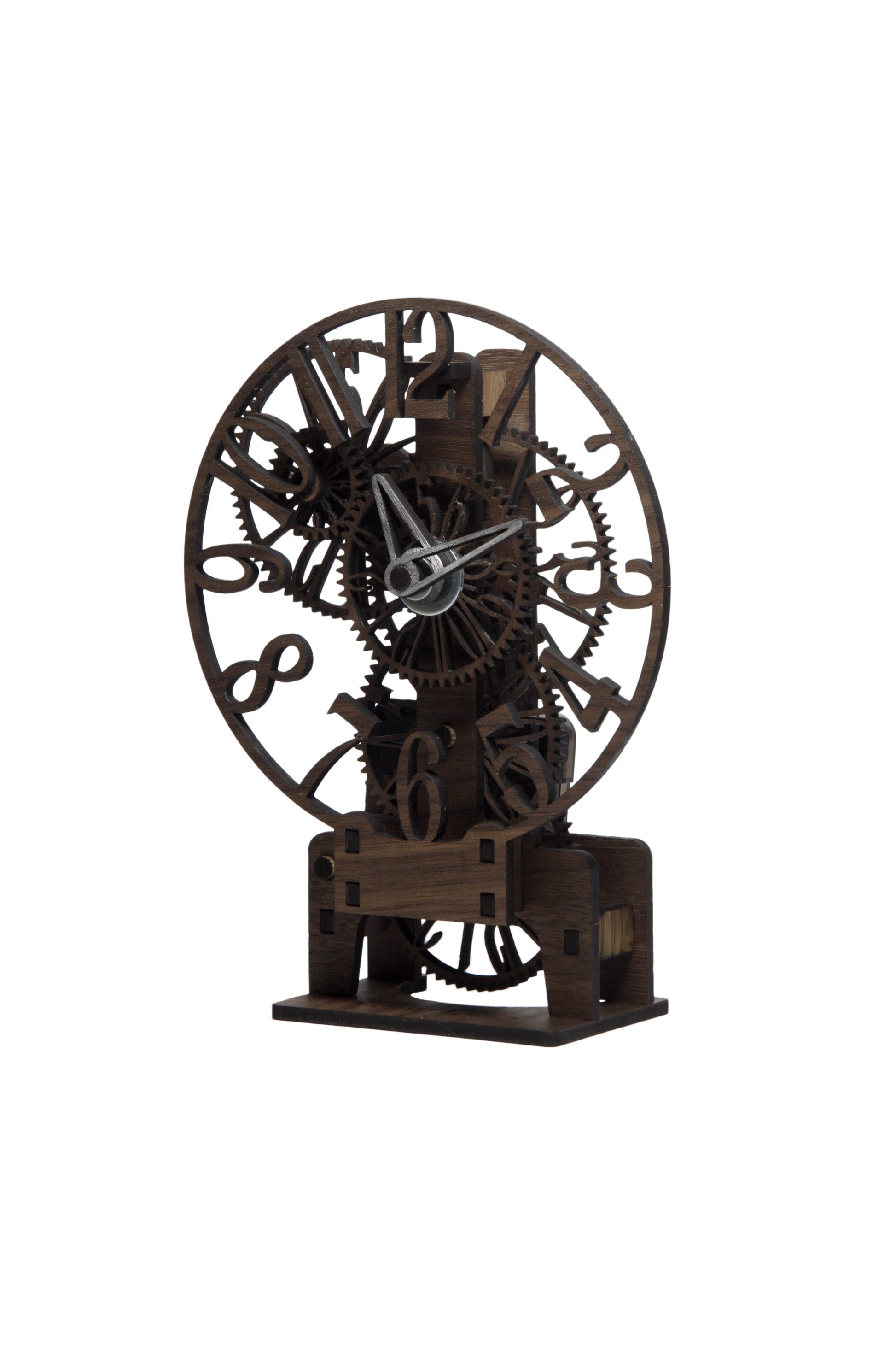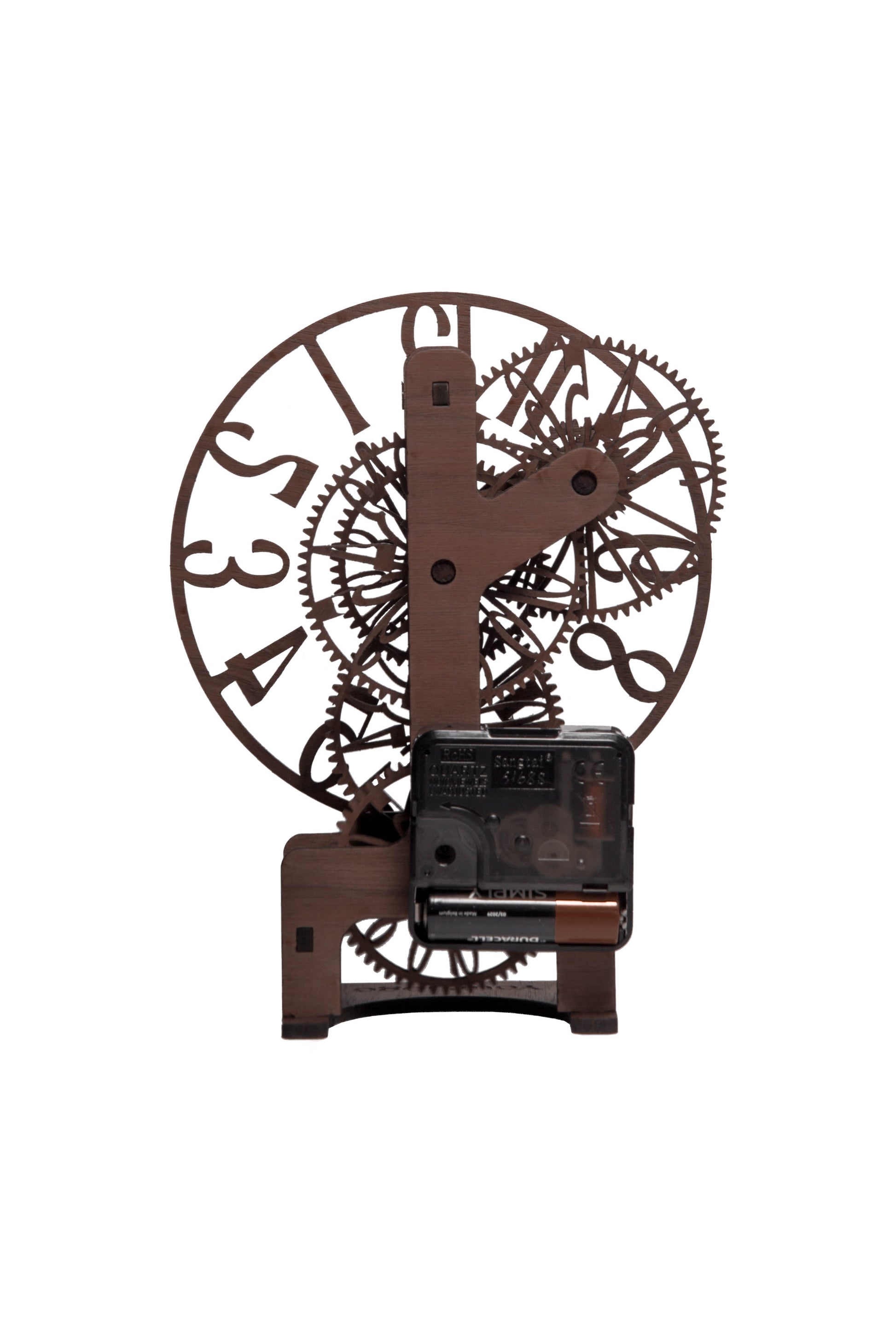 Lesena ura – Lasersko izrezan mehanski DIY komplet | Namizna ura z drznimi številkami